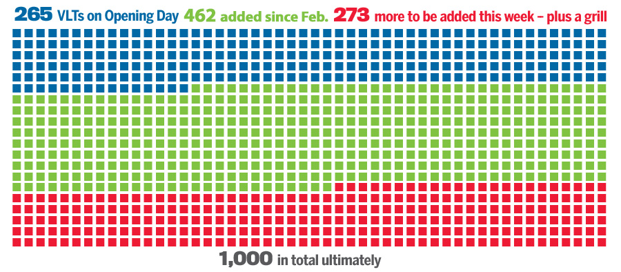 The casino will have all 1,000 machines installed by this week – that’s the maximum allowed under the 2013 state law that authorized VLT casinos in Suffolk and Nassau counties.